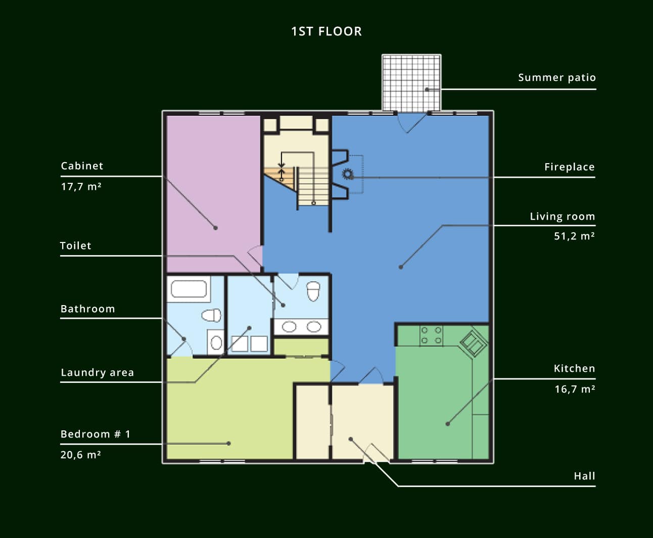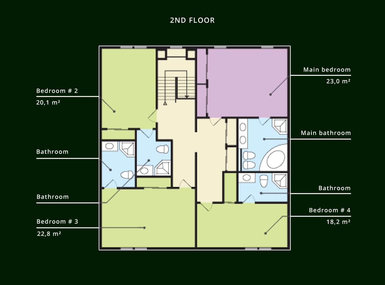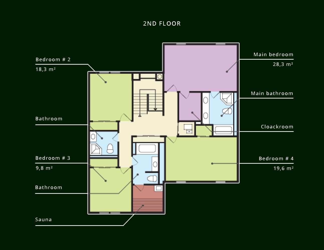 Presidential and Presidential Deluxe townhouses are well planned. President Deluxe is slightly larger than President and is equipped with one extra bathroom instead of sauna.